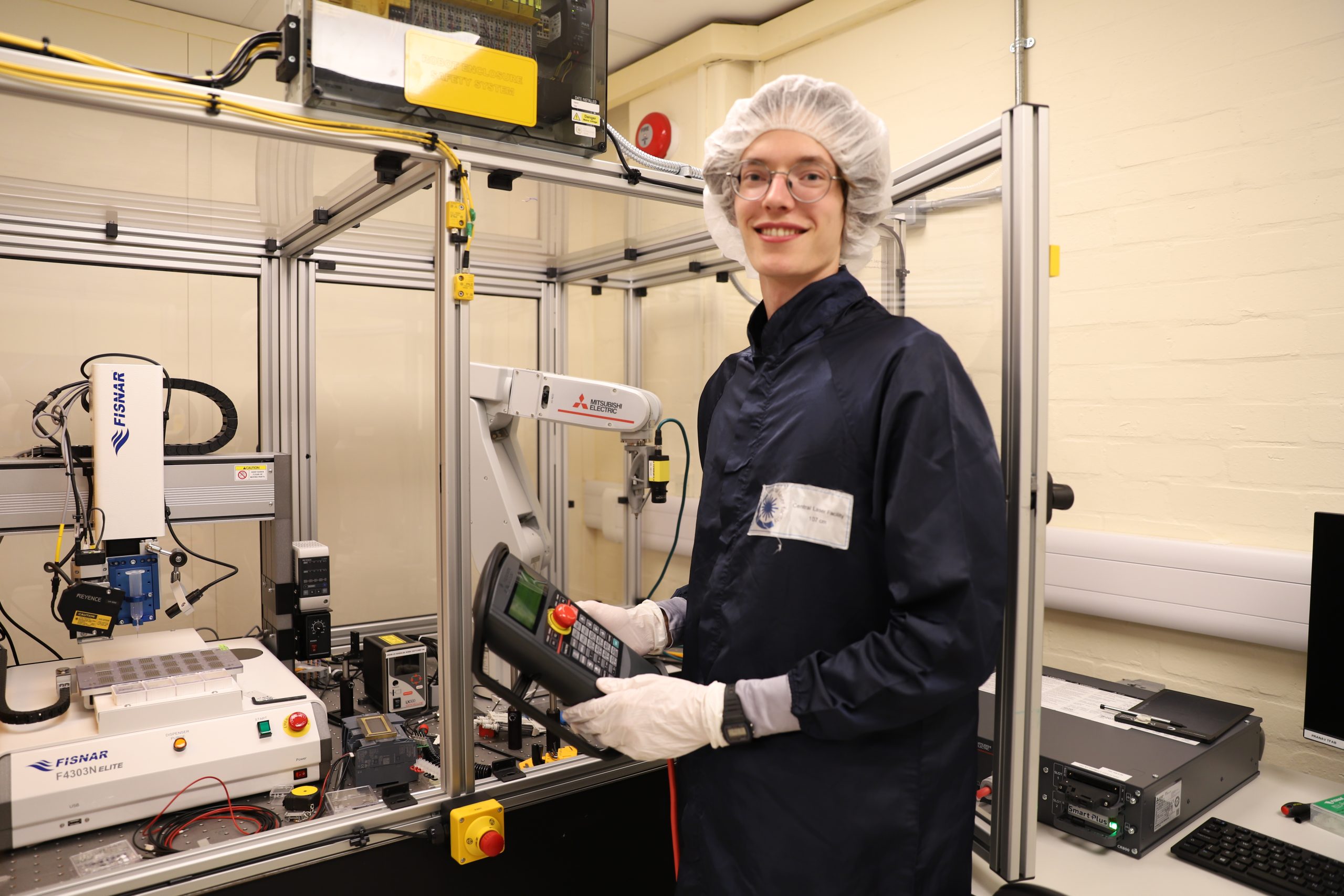 Most of his day-to-day work involves working on the 5-year running placement student project of attempting to automate the process of fabricating a simple target, which consists of programming robotic arms to accurately place hairs width thin pieces of gold foil on a grid. Alongside that, Christopher does bits of programming and assists with some of the 3D printing in the target fabrication group.