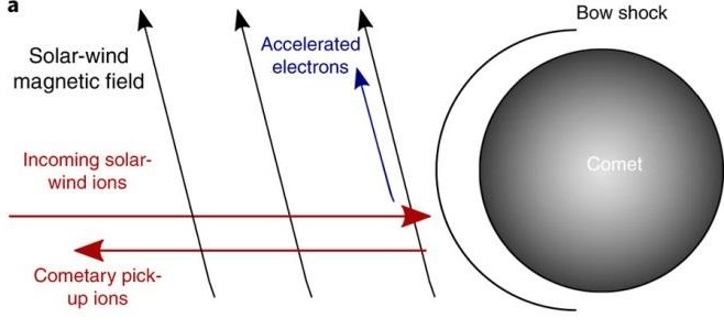 Figure 1 – Explaining the interaction of a comet with the solar wind and the generation of a suprathermal electron population.