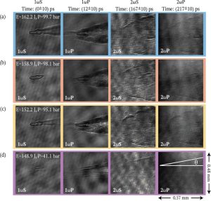 The primary takeaway from these first results is the difference in temporal evolution for shots with very small fluctuations in initial parameters. For (a) – (c), the average gas pressure is 98 bar ± 2 bar and the average laser energy 158 J ± 5J. Here the early evolution varies substantially. Variance which does not appear correlated with higher laser energy and plasma density alone. Further insights are available in the full publication.